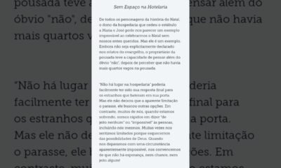 Meditação do Dia! Sem Espaço na Hotelaria.
