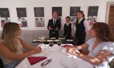 Professor da Escola de Hotelaria de Fátima demonstra serviço de vinho e receita de crepe Suzette